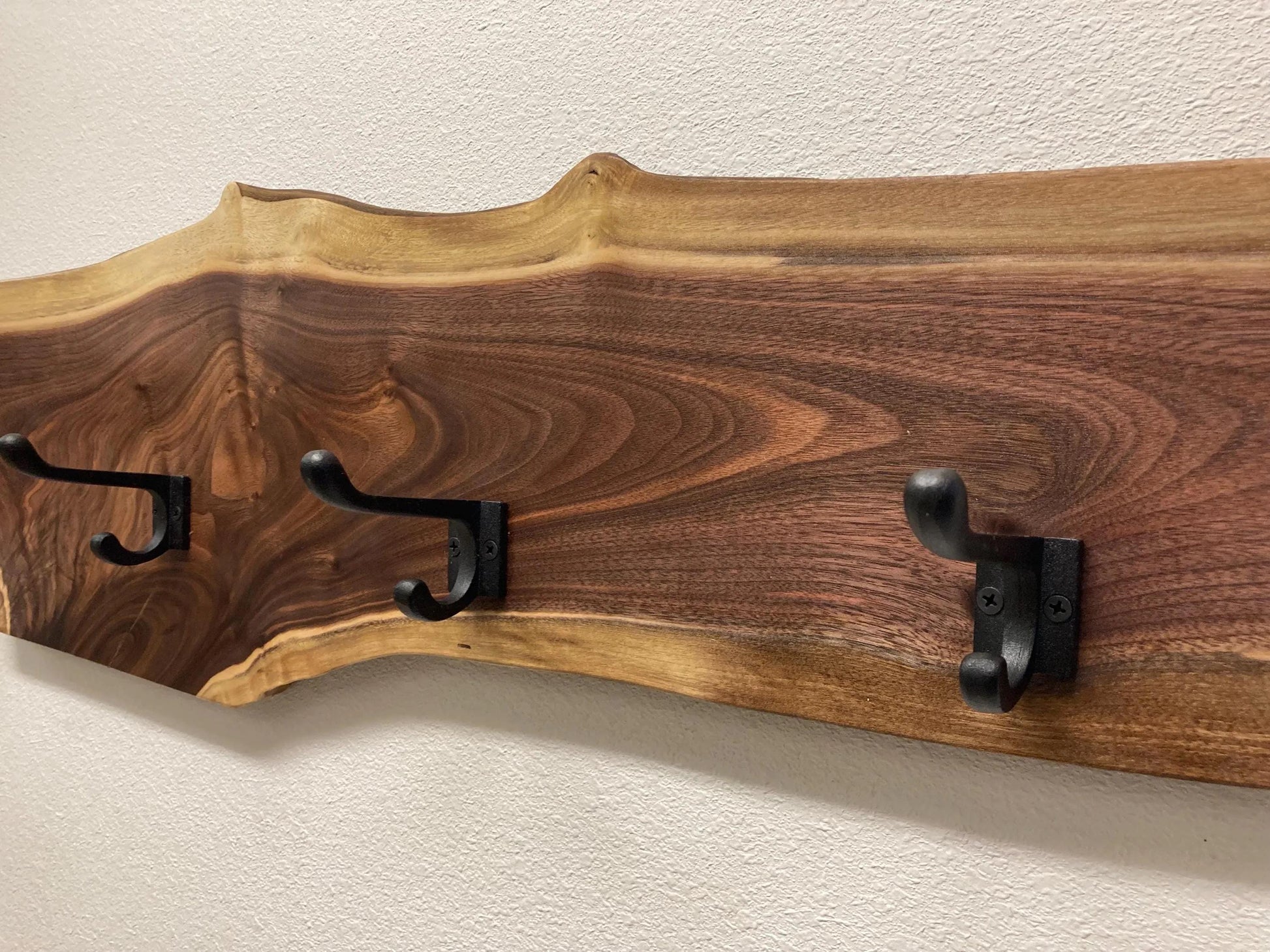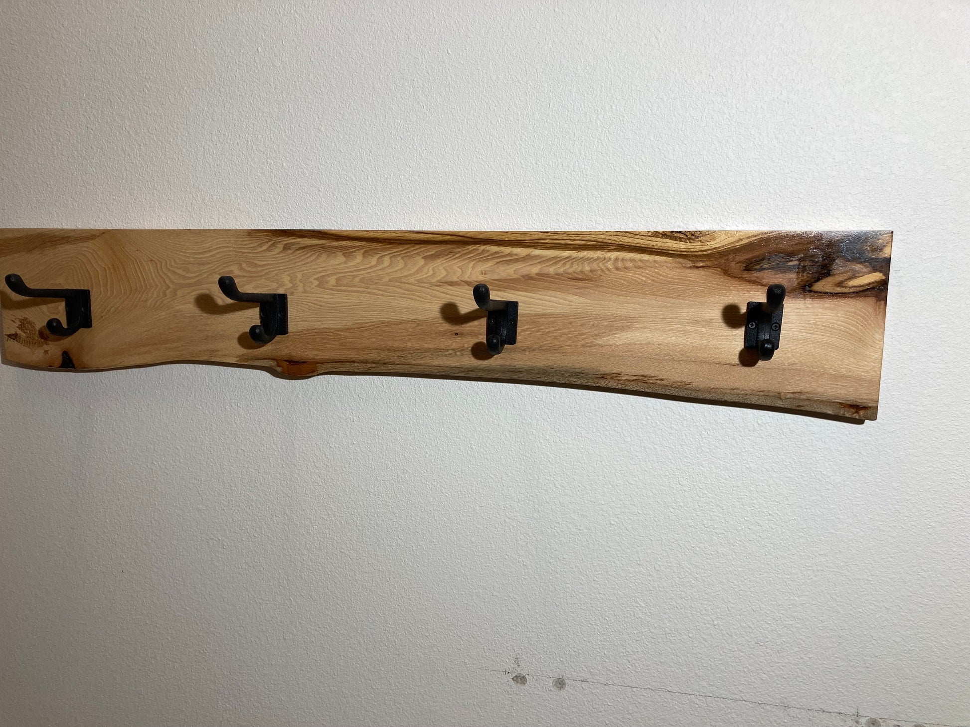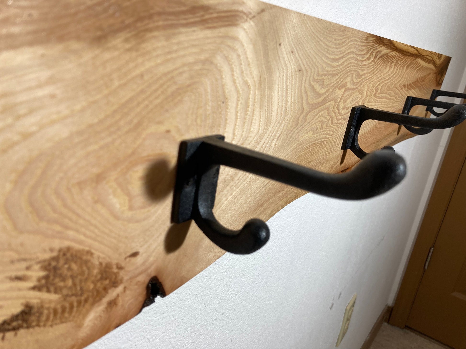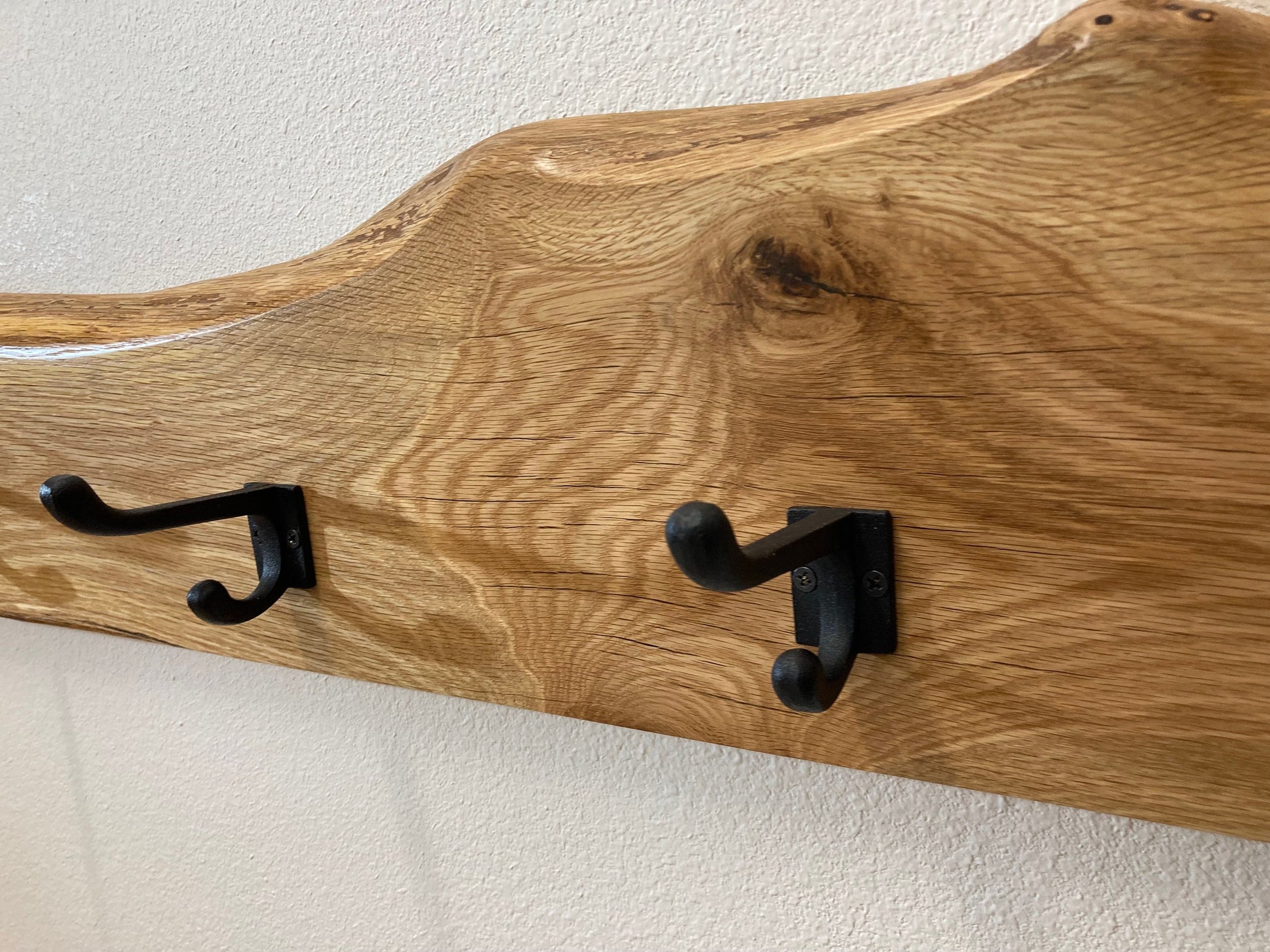 Live edge solid wood coat hooks with Cast iron hooks
