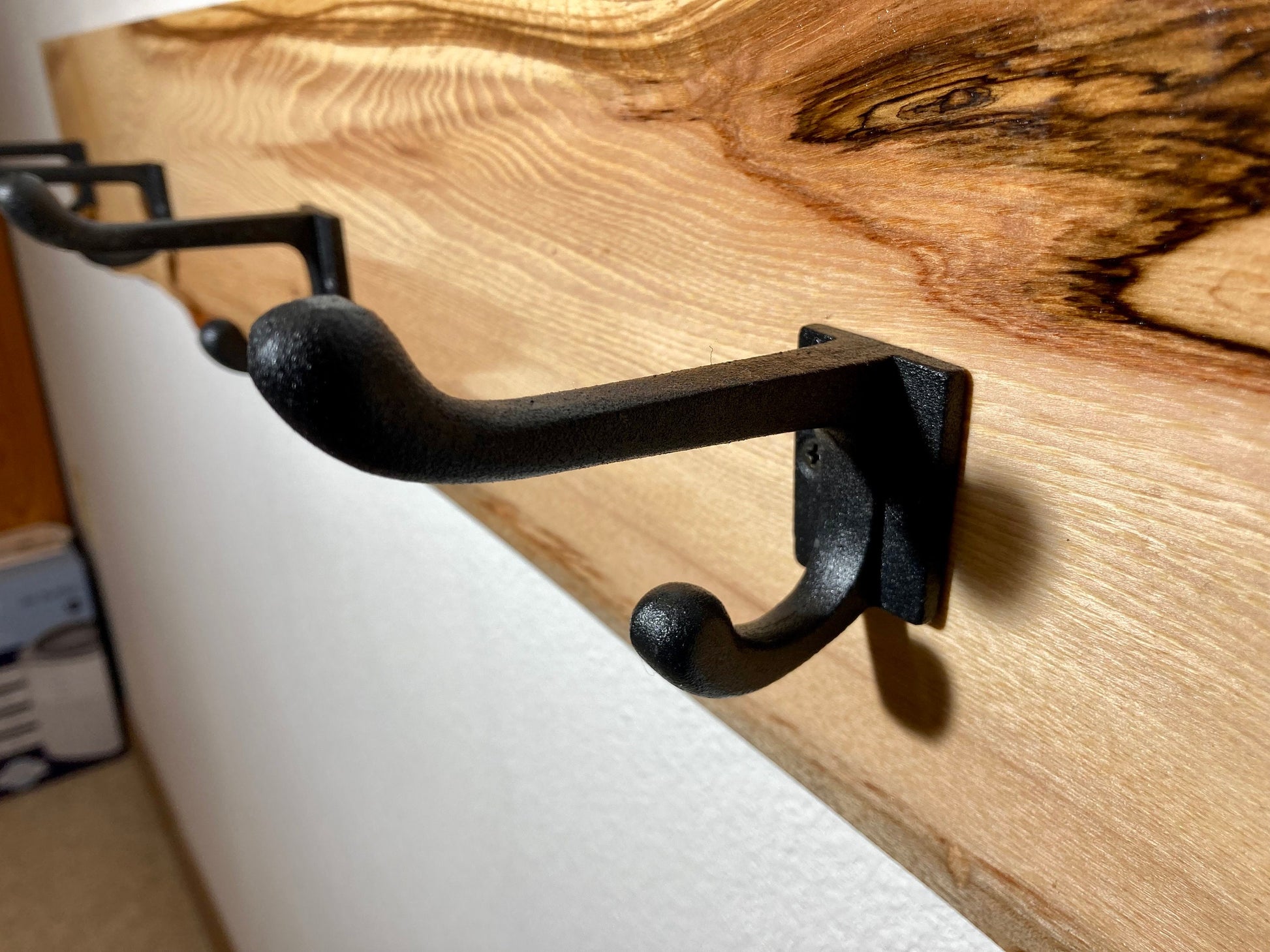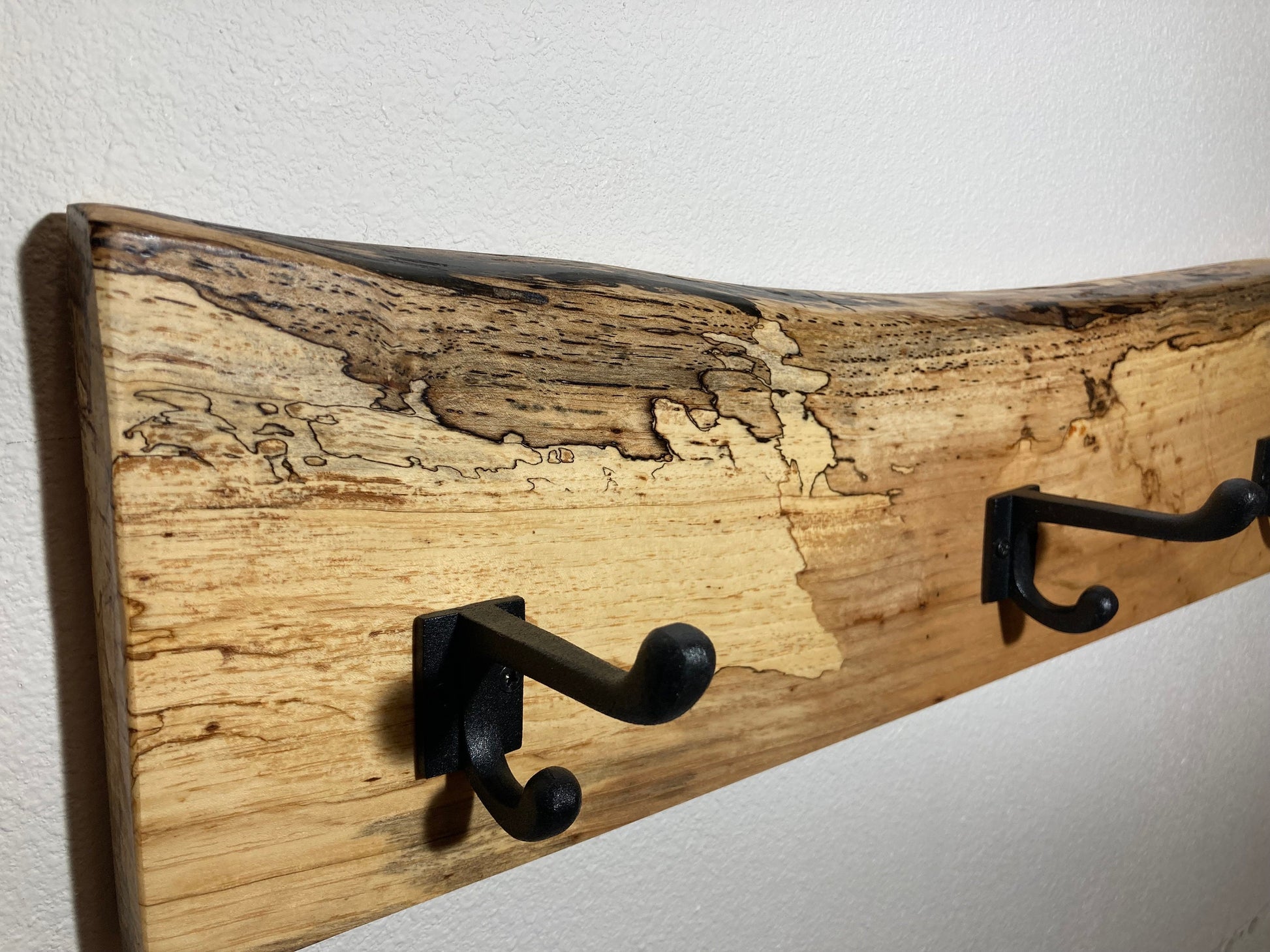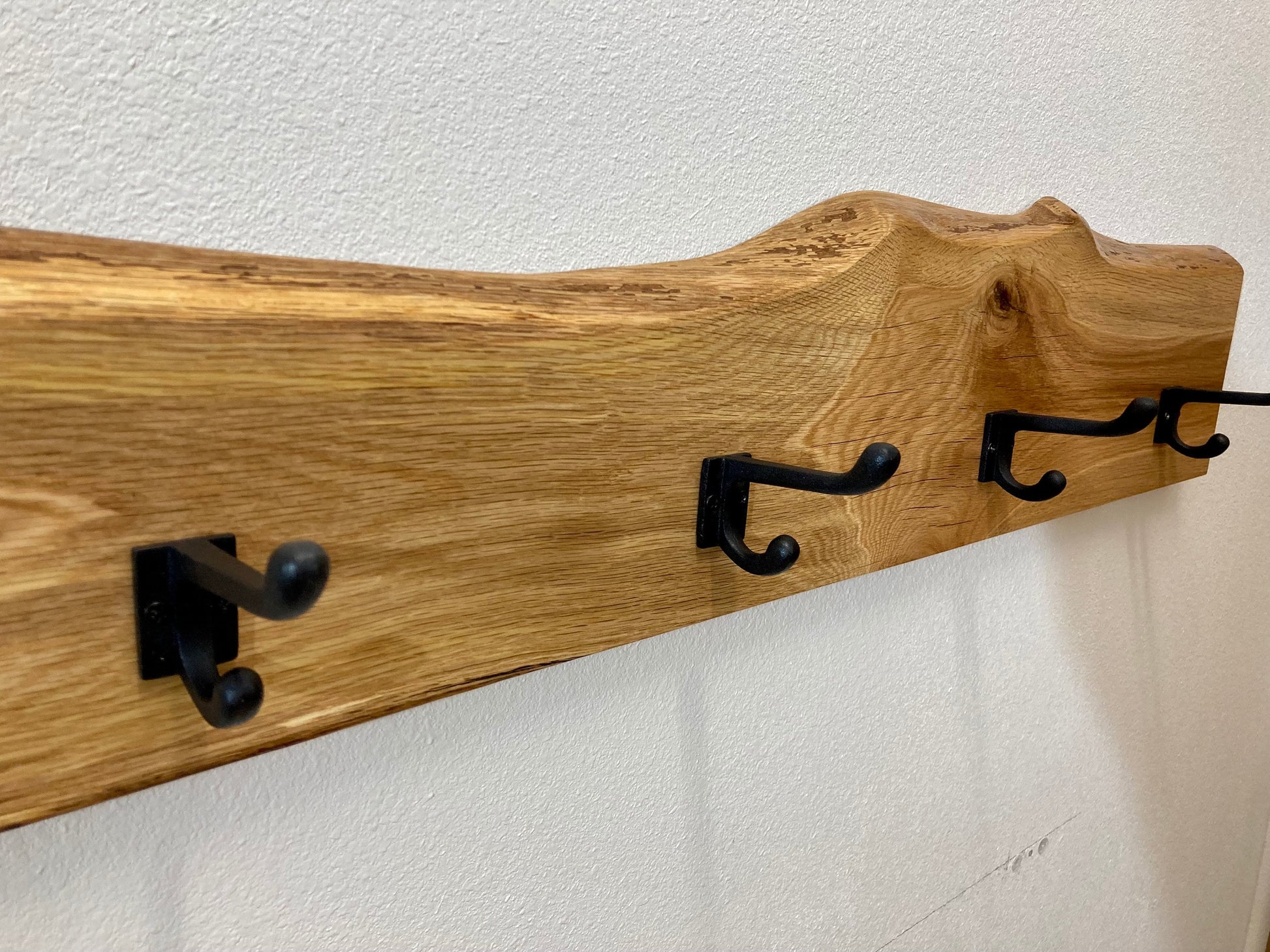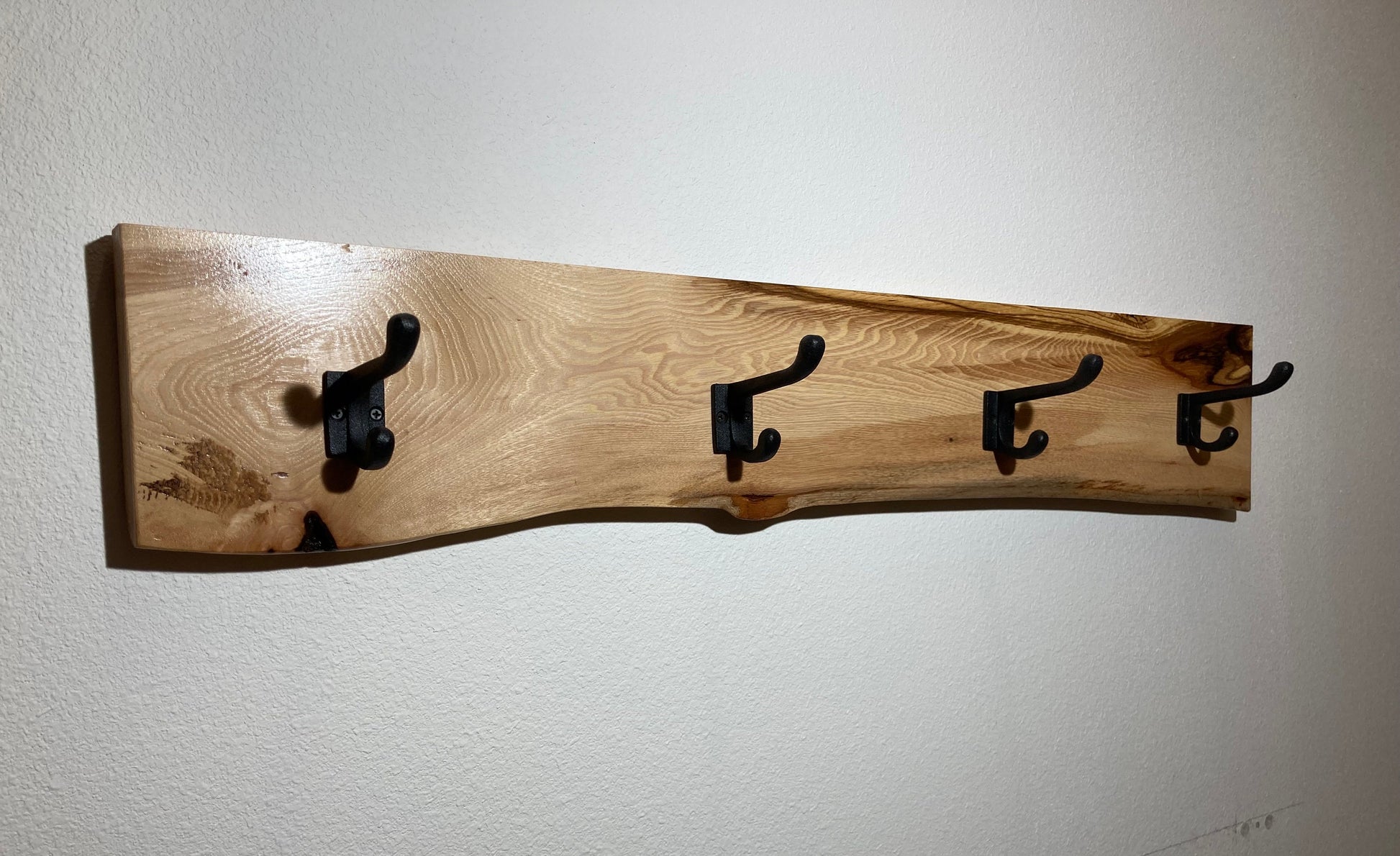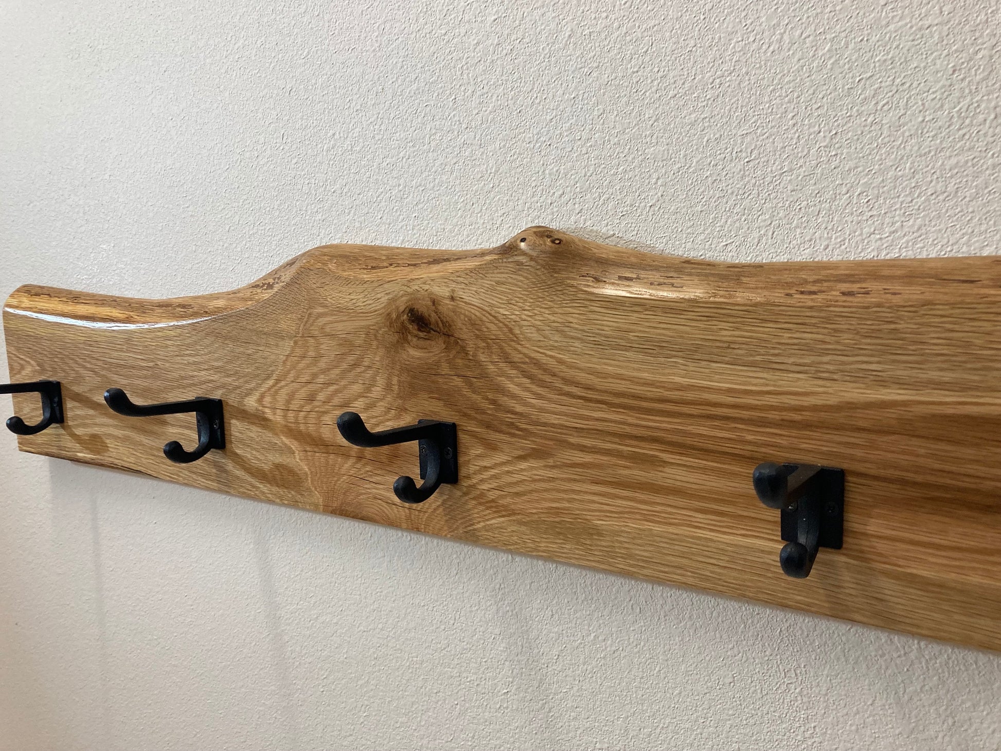 Live edge solid wood coat hooks with Cast iron hooks