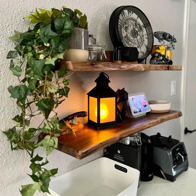 Modern Live-edge Floating Shelf with Hidden metal brackets.
